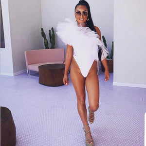 CHLOE WHITE TULLE RUFFLE ONE SHOULDER SWIMSUIT- Regular price