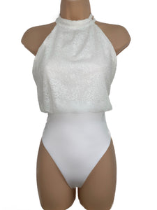 IVORY SEQUIN HALTER NECK CUT OUT BACK SWIMSUIT- Regular price