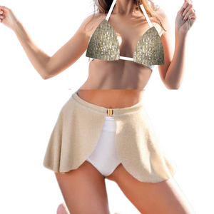 NUDE SEQUIN 3 PIECE CROP ASSYMETRIC BIKINI- Regular price